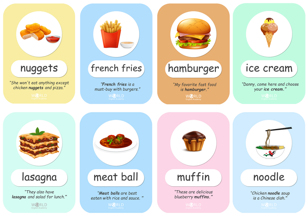 Learning the names of foods can be quite beneficial for young children and beginners. Here you'll find a list of food names in English with pictures and examples. Also, this set includes three videos.